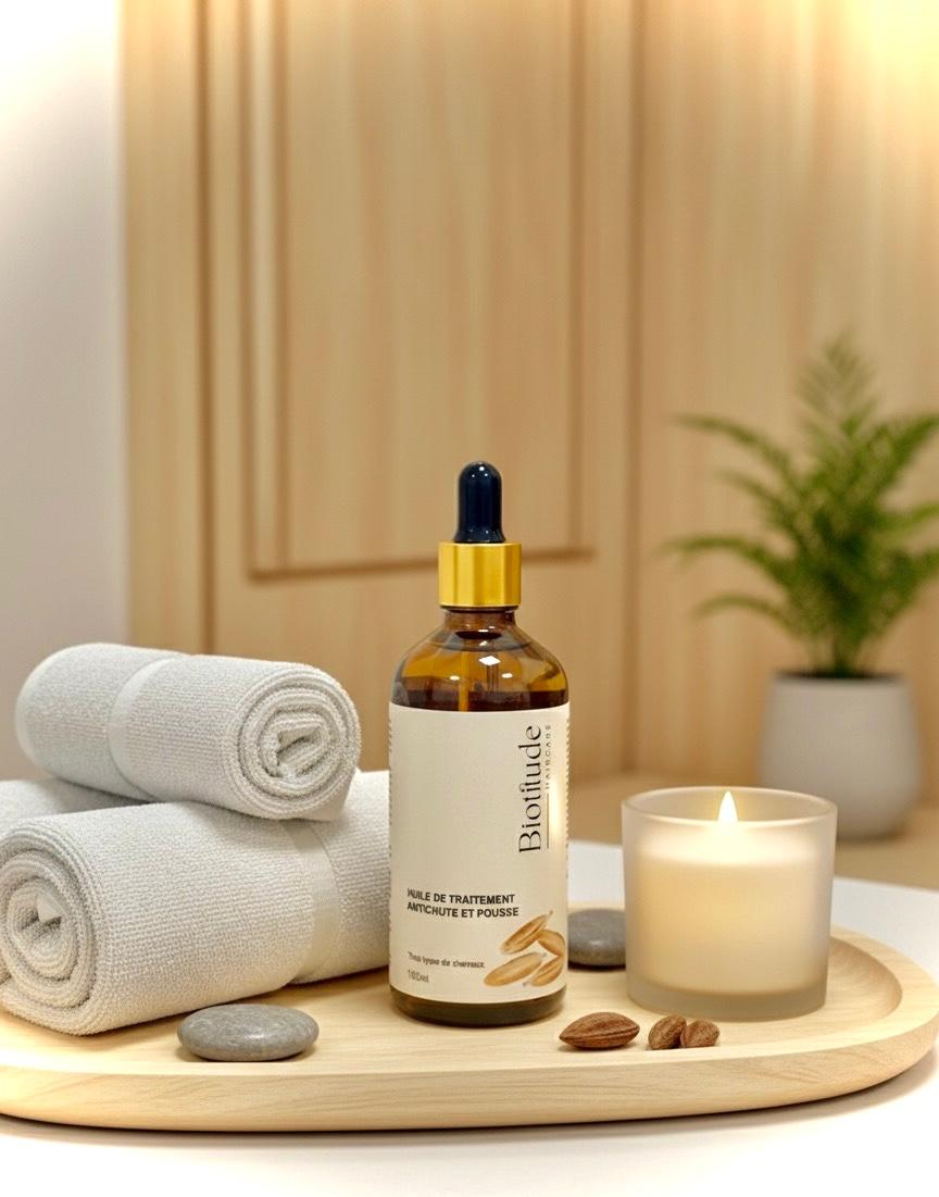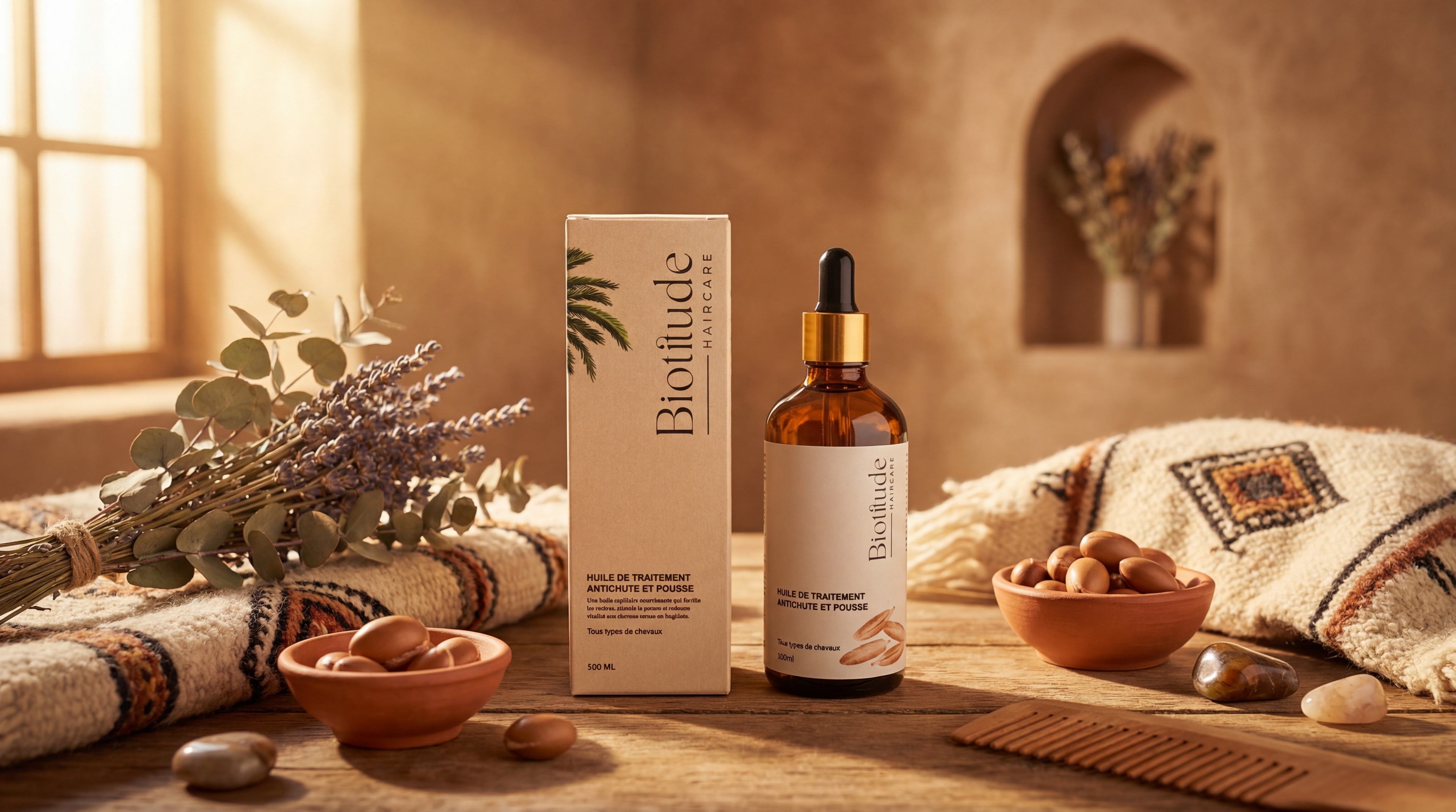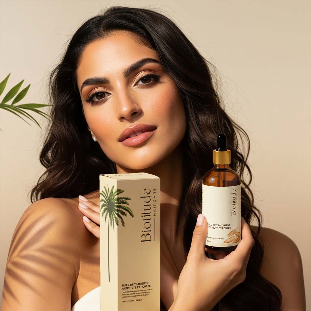 Découvrez notre huile de traitement intensif, inspirée des rituels marocains, conçue pour freiner la chute, stimuler la repousse et redonner force et vitalité à chaque fibre.